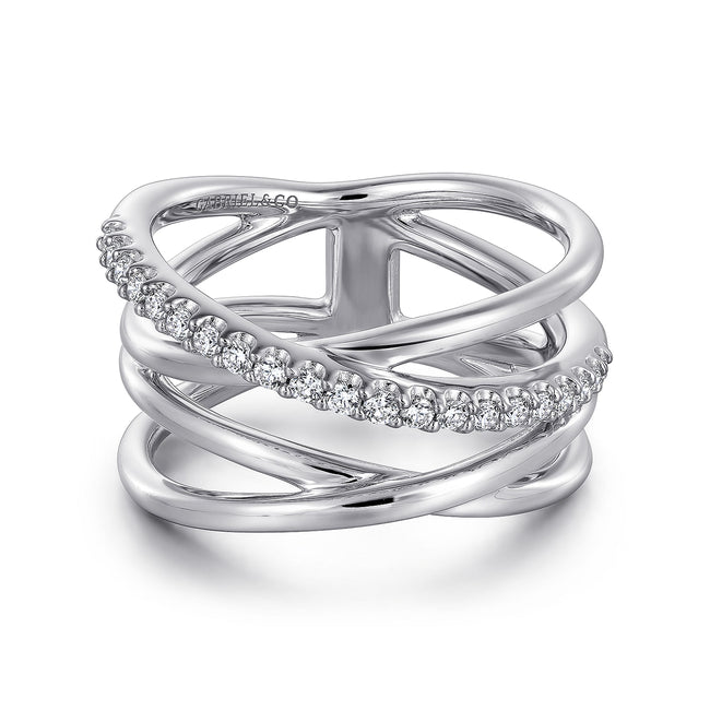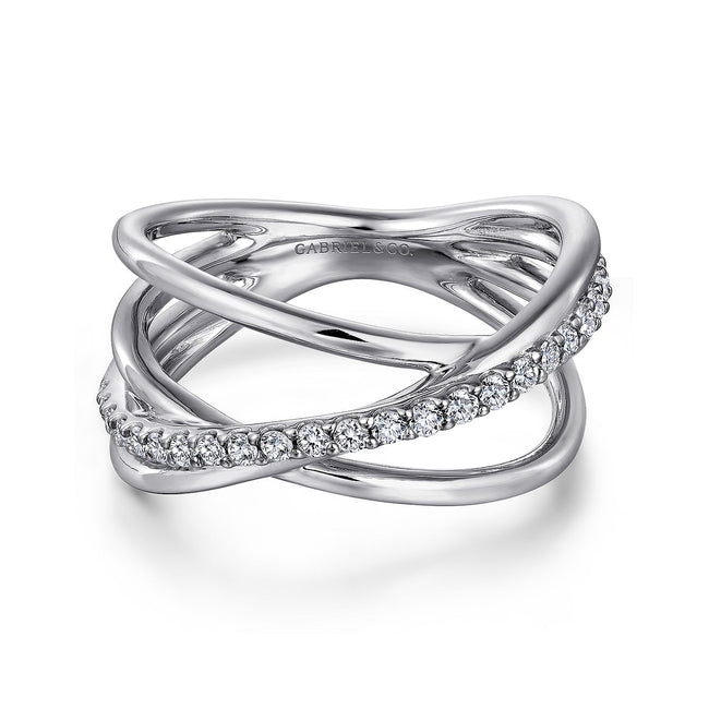 925 Sterling Silver White Sapphire Pavé Criss Cross Ring