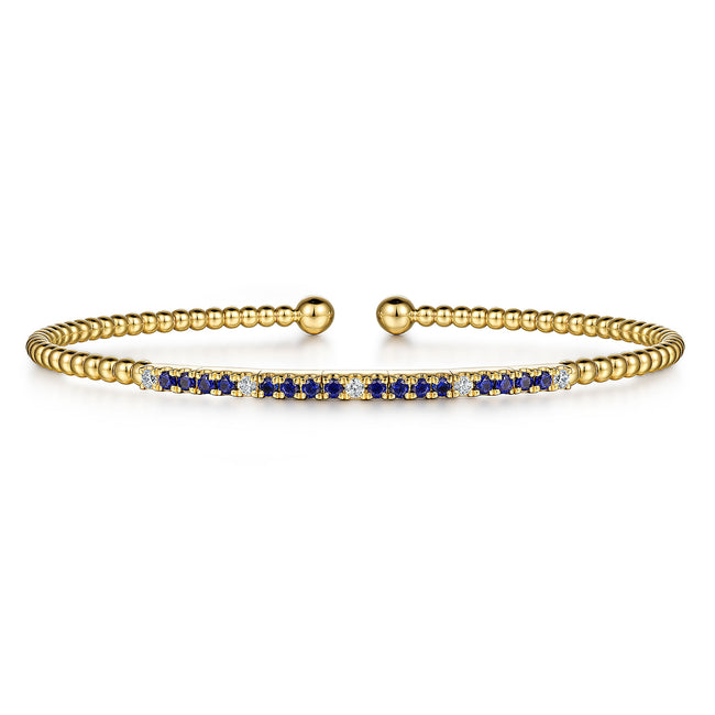 14K Yellow Gold Bujukan Diamond and Blue Sapphire Split Bangle