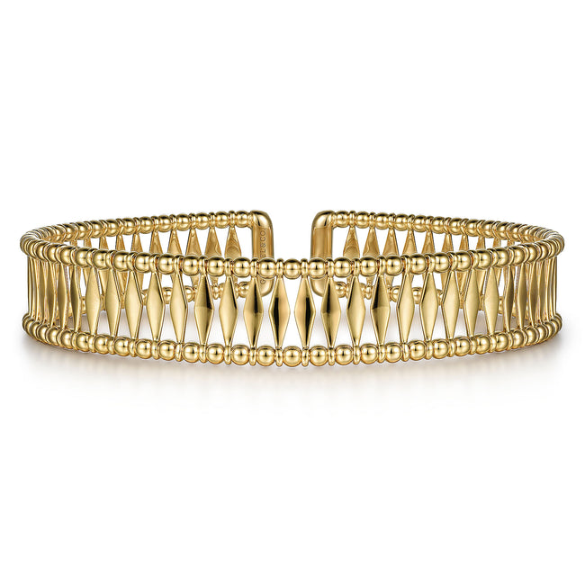 14K Yellow Gold Bujukan Open Cuff Bracelet with Diamond Baguettes