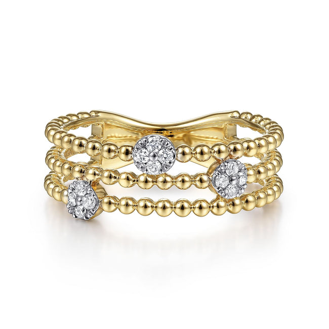 14K Yellow Gold Bujukan Diamond Cluster Stations Easy Stackable Ring