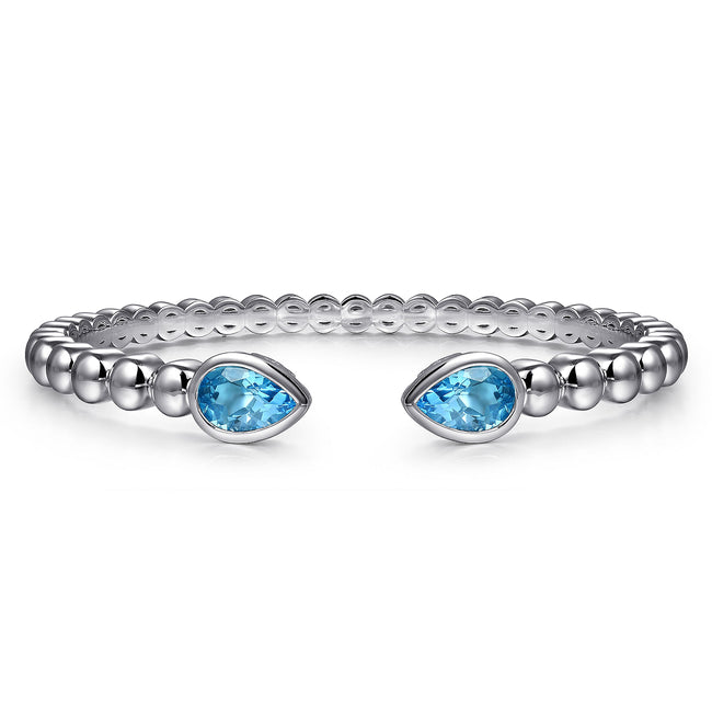 925 Sterling Silver Bujukan and Pear Shape Blue Topaz Split Bangle Bracelet