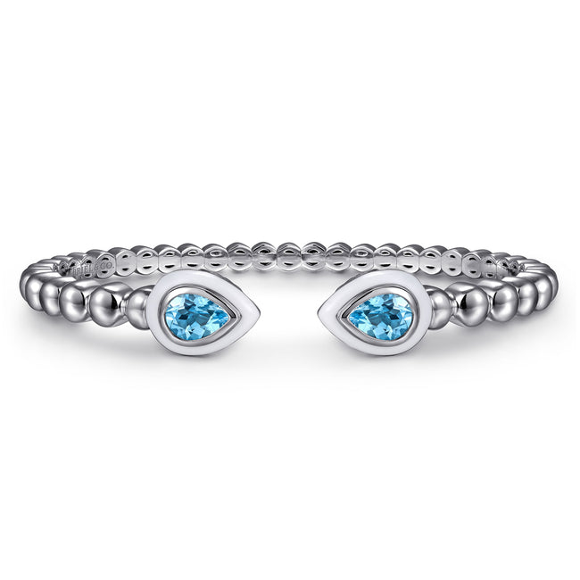 925 Sterling Silver Bujukan Blue Topaz Open Bangle with White Enamel