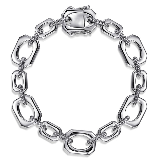 925 Sterling Silver Bujukan And Elongated Octagon Link Chain Bracelet