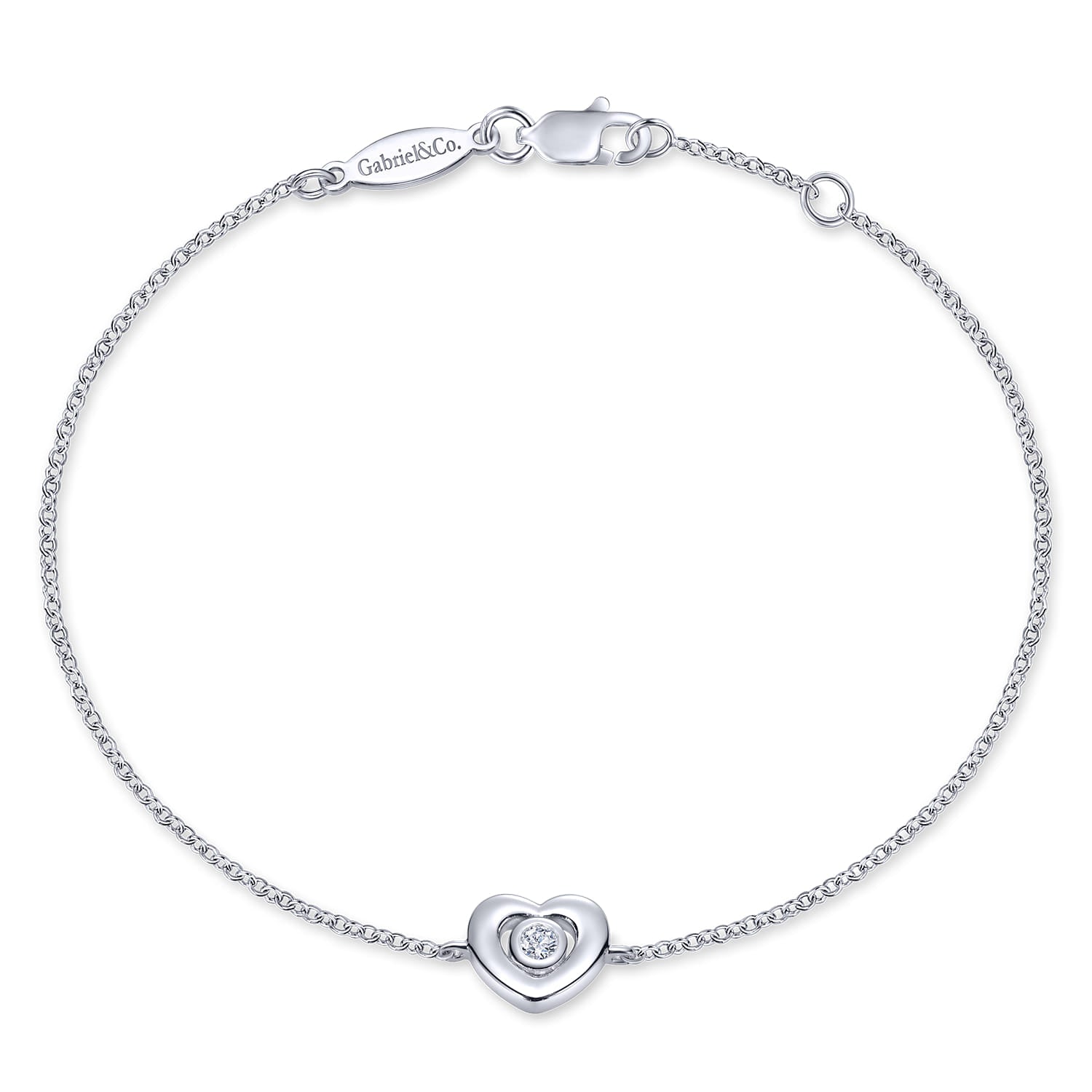 925 Sterling Silver White Sapphire Heart Chain Bracelet - Size: 7