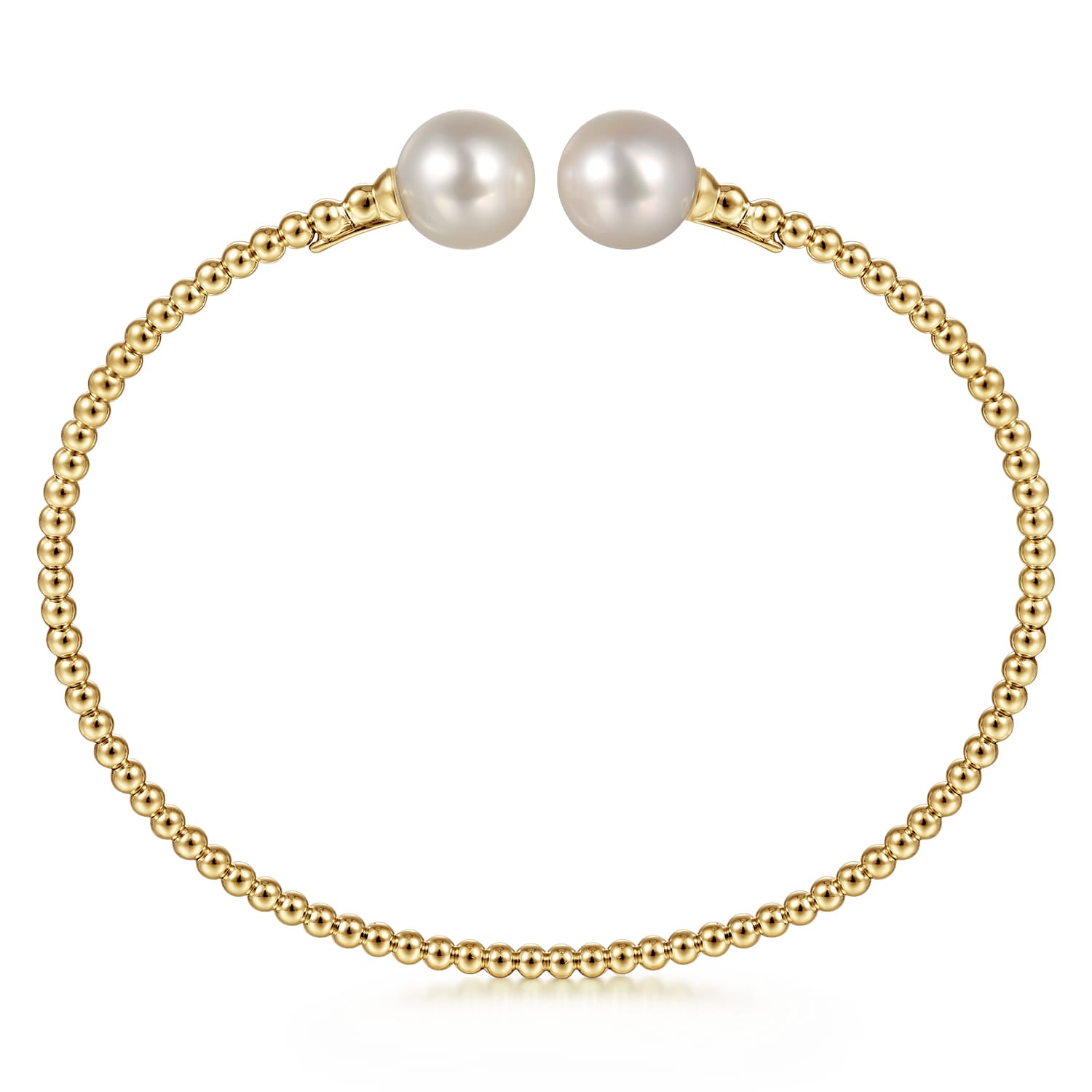 14K Yellow Gold Bujukan Pearls Split Bangle With 1.61Twt Cultured White Pearls - Size: 6.25