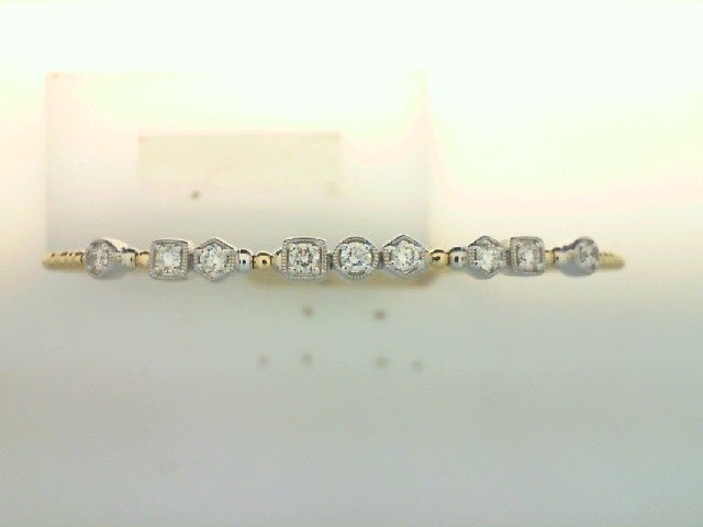 Lady's White And Yellow 14 Karat Bangle Bracelet Length 7 With = 0.45Twt Round Brilliant G/H Si1 Diamonds