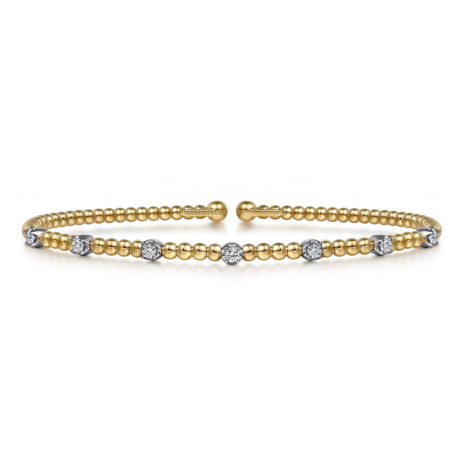 14K White-Yellow Gold Bujukan 0.21tw Diamond Stations Bangle - Size: 6.25