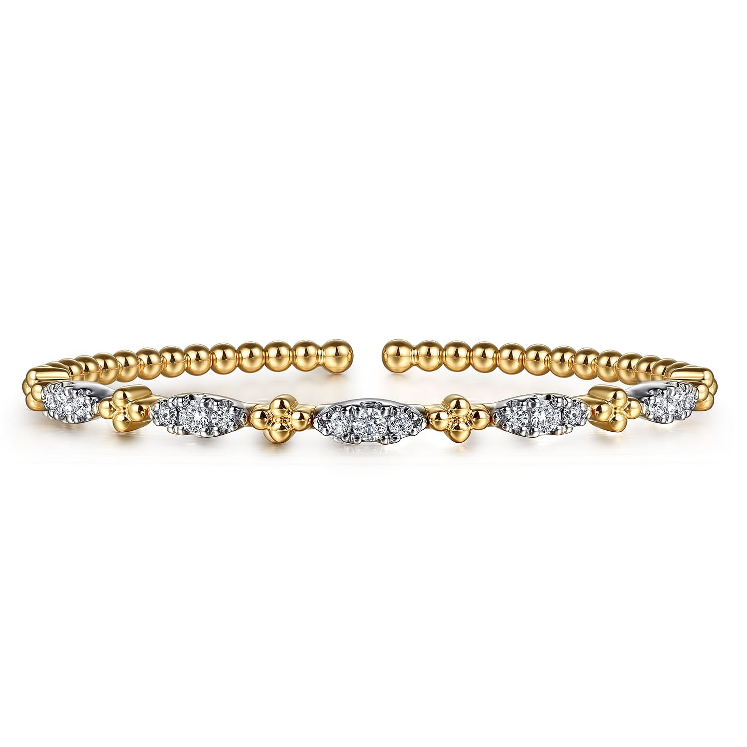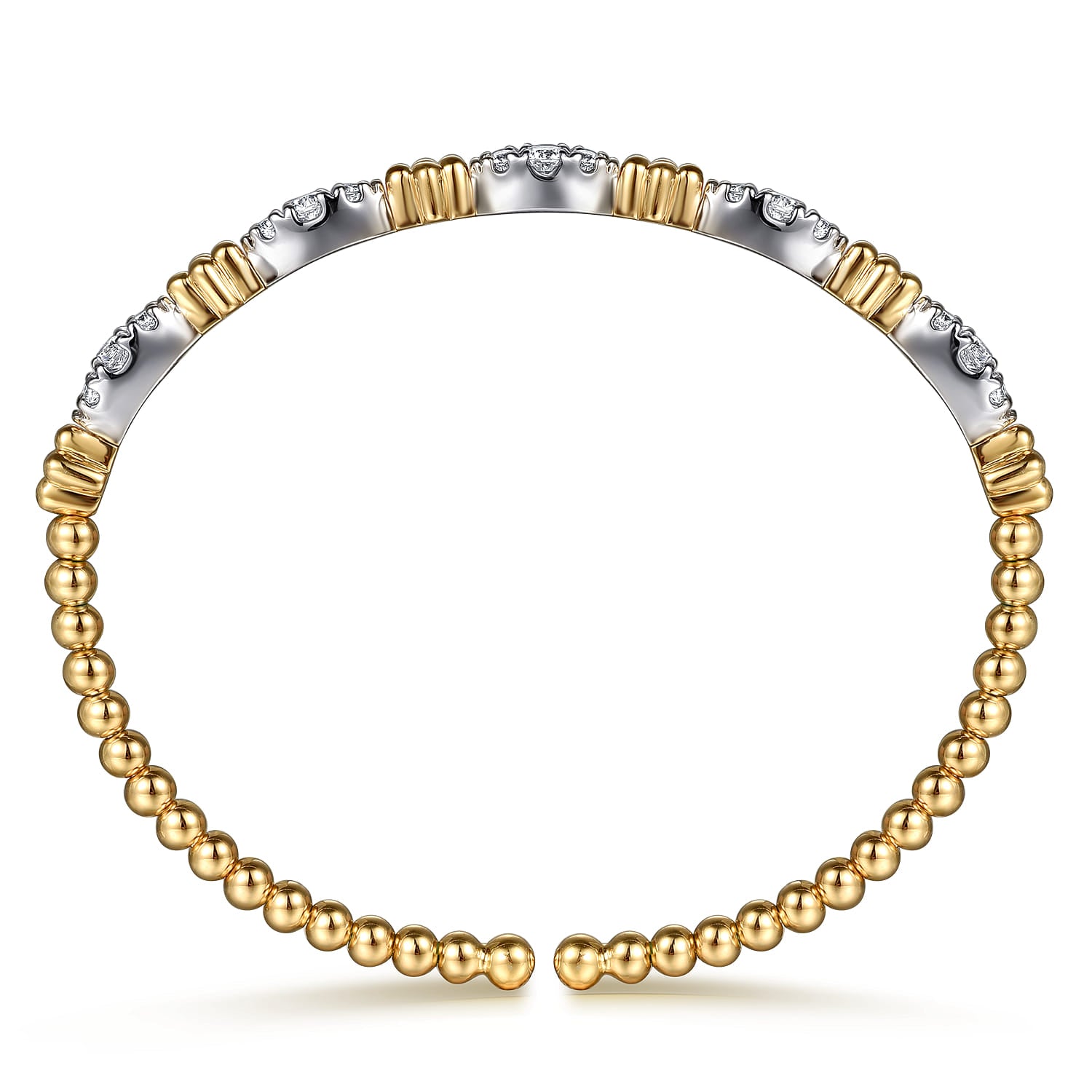 14K White & Yellow Gold Bujukan Beads and 0.74Twt Round Brilliant G/H Si1 Diamonds Station Split Bangle Bracelet - Size: 6.25