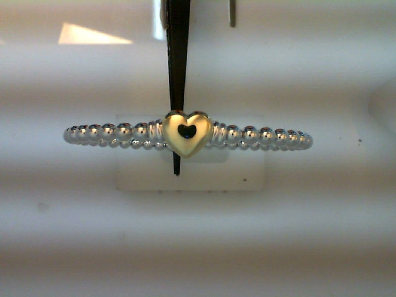 White And Yellow 14K Gold And Silver Heart Bangle Bracelet Length 6