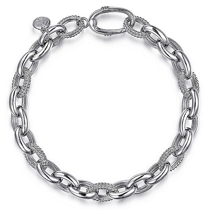 White Sterling Silver Oval Link Bracelet Length 7.5