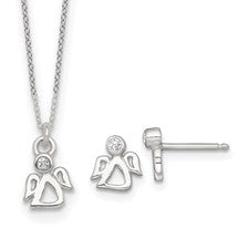 Lady's White Sterling Silver Set Necklace Earrings