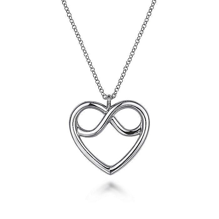 Lady's White Sterling Silver Heart Charm Length 17.5