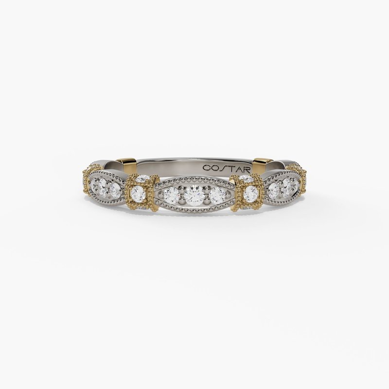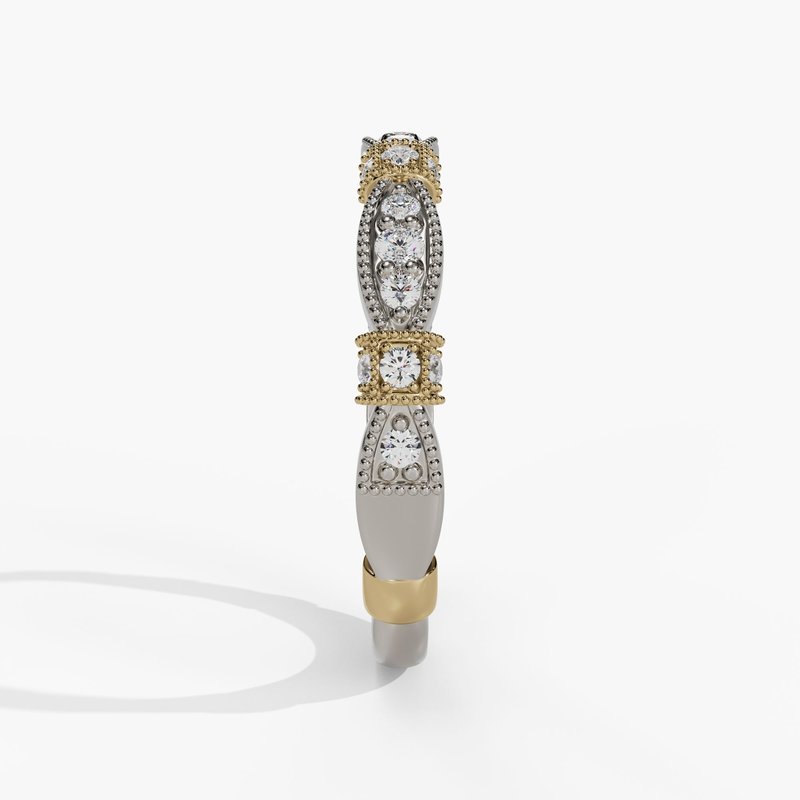 White And Yellow Cube Marquise Milgrain 0.25tw G/Si1 Diamond Stackable Wedding Band - Size: 6