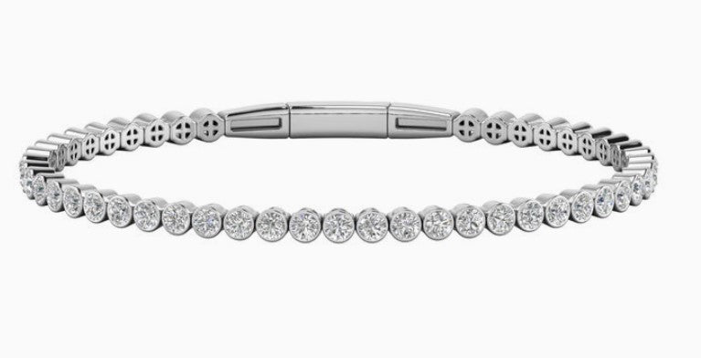 Lady's White 14 Karat Bangle Bracelet Length 7 With 44 = 0.75Twt Round Brilliant G/H Si1 Diamonds