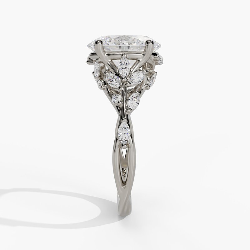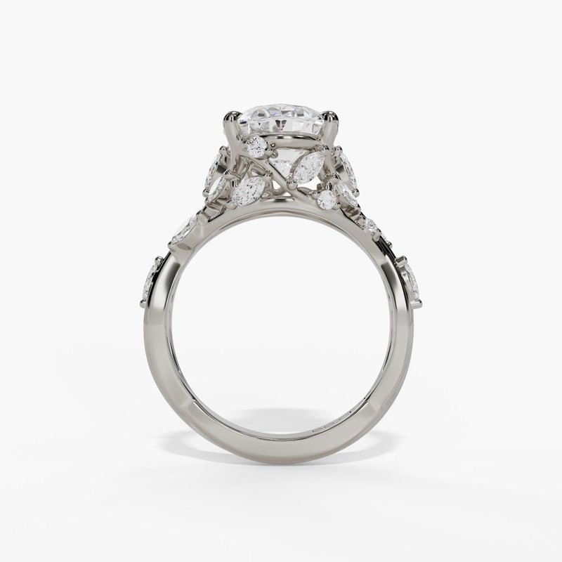 White 14 Karat Vintage Ring Size 6 With = 0.45Tw Marquise Shape F/G Vs2 Diamonds And = Round F/G Vs2 Diamonds