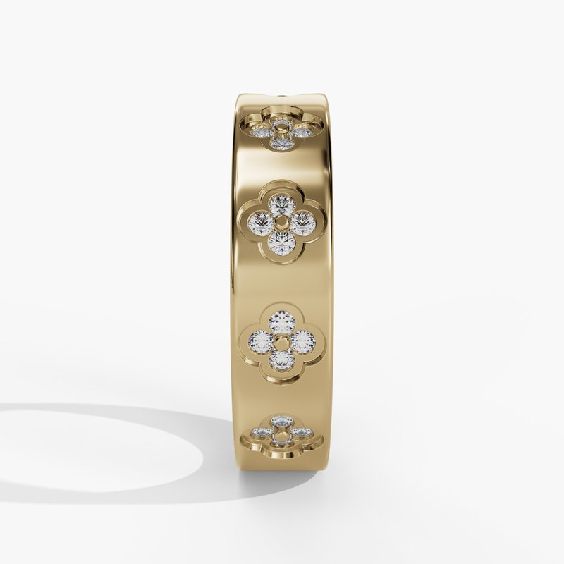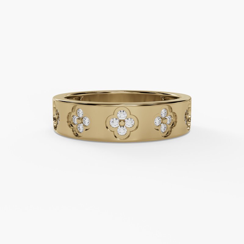 Yellow 14 Karat Clover Fashion Band With 0.35Tw Round Brilliant F/G Vs2 Diamonds Size: 6