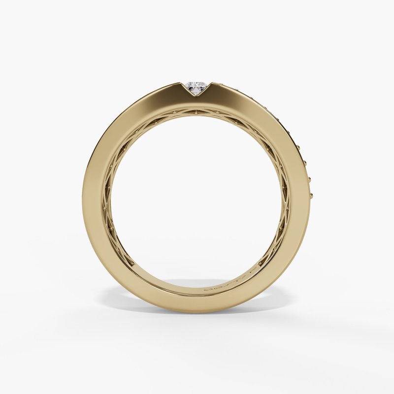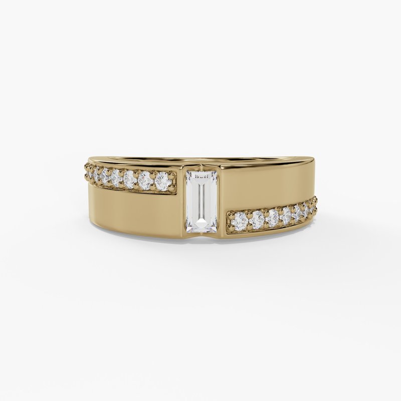 Yellow 14 Karat Emerald-Cut 0.35ctw G/Si1 Diamond Statement Band with Pave Accents - Size: 6