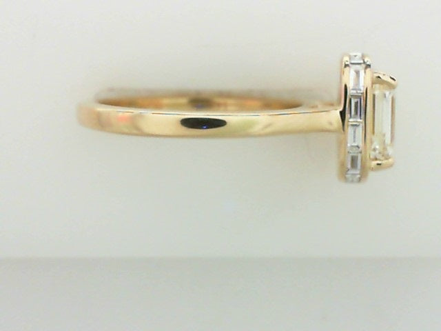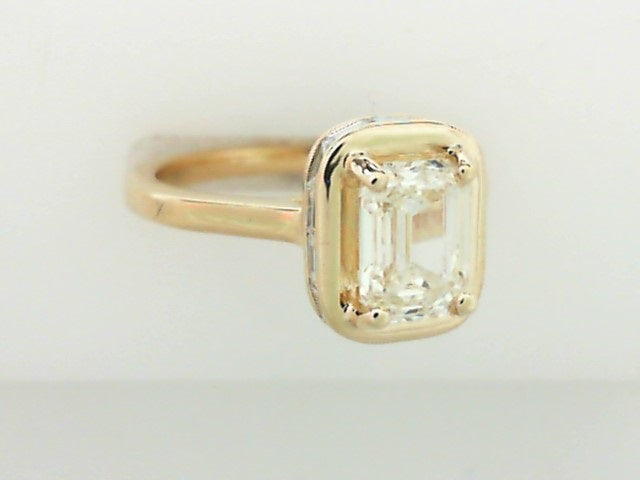 Yellow Gold 14 Karat Emerald Solitaire Engagement Ring 0.30TW Baguette Shape Diamonds Color-G Clarity-Vs1 (Setting only, center stone not included.)
