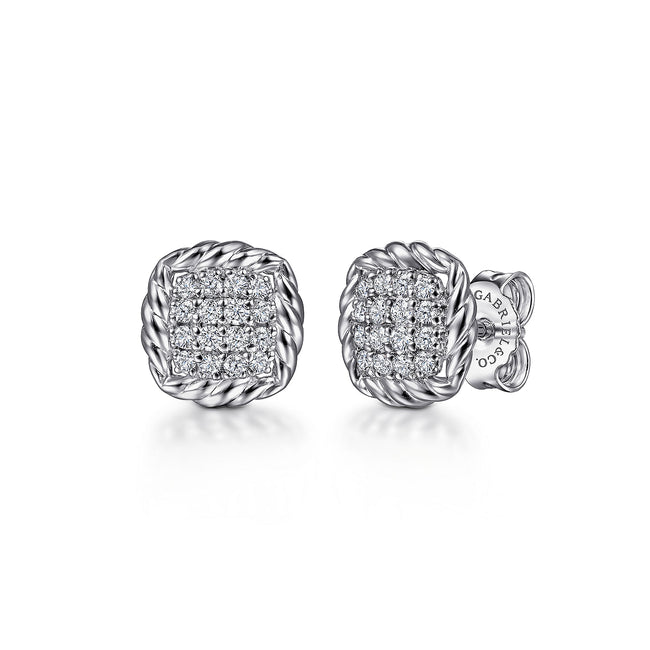925 Sterling Silver White Sapphire and Rope Frame Stud Earrings