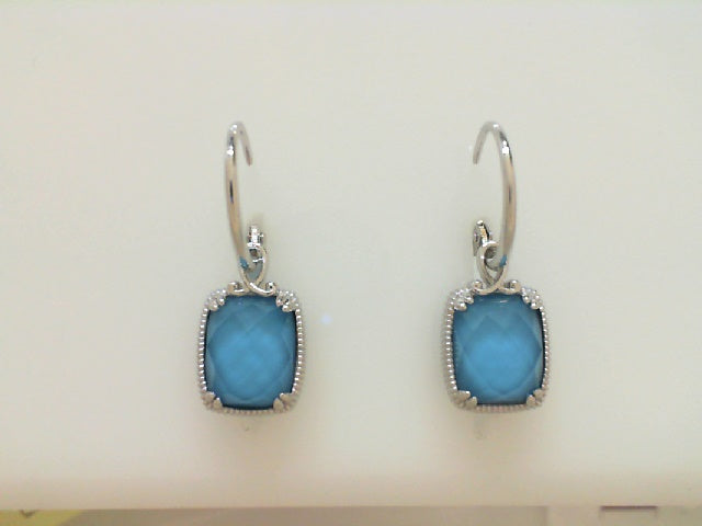 Lady's White Sterling Silver Filigree Drop Earrings With = 7.37Tw Retangular Cushion Shape Blue Rock Crystals