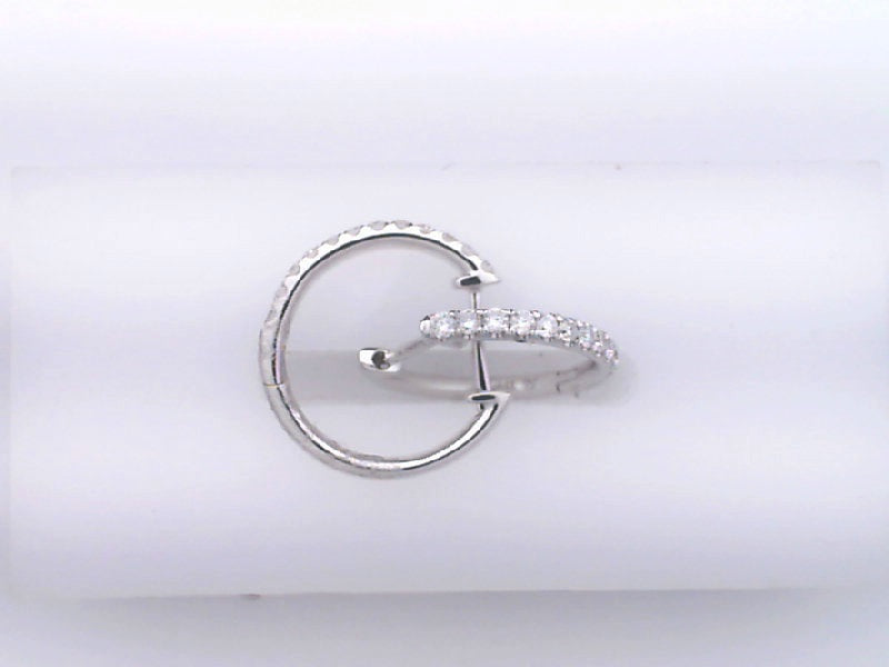 Lady's White 14 Karat Small Hoop Earrings With 0.24Tw Round G Si1 Diamonds