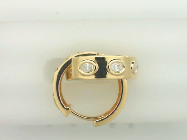 Lady's Yellow 14 Karat Small Hoop Earrings With 6 = 0.35Twt Oval Shape G/H Si1 Diamonds