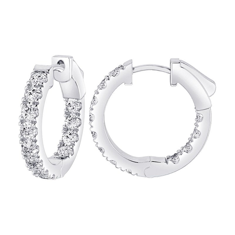 Lady's White 14 Karat Medium Hoop Earrings With 30 = 0.50Tw Round Brilliant G Si1 Diamonds 15.0Mm