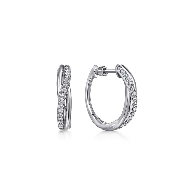 925 Sterling Silver Twisted 15mm White Sapphire Huggie Earrings