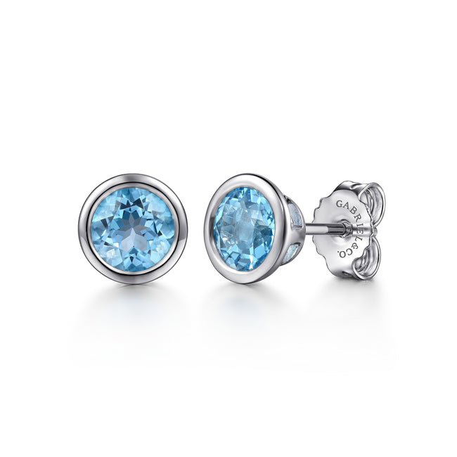 925 Sterling Silver Swiss Blue Topaz Bujukan Classic 40mm Hoop Earrings
