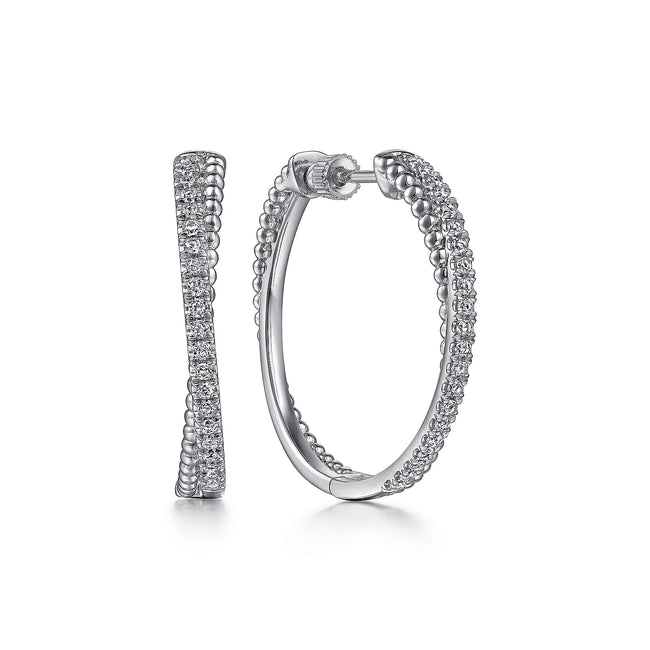 925 Sterling Silver White Sapphire Twisted Bujukan 30mm Classic Hoop Earrings