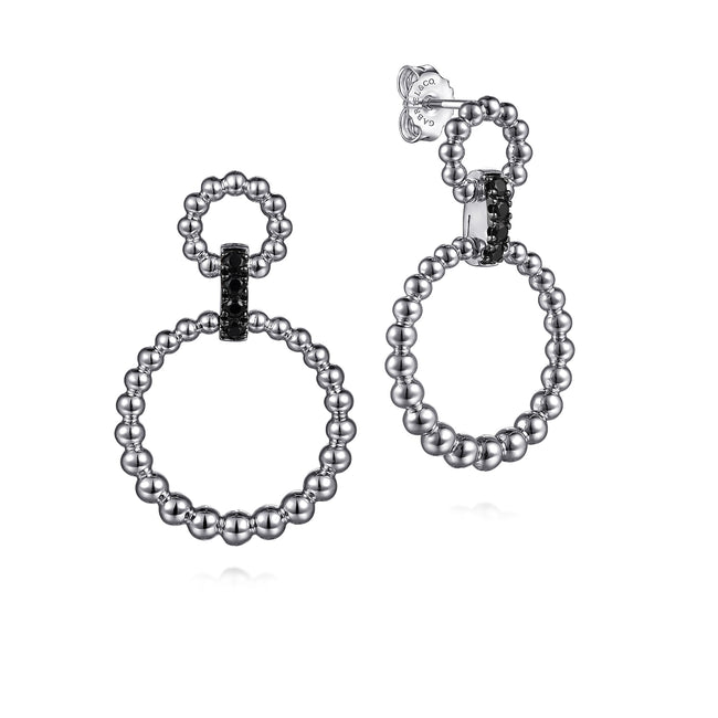 925 Sterling Silver Black Spinel Bujukan Link Drop Earrings