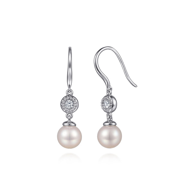 925 Sterling Silver Bujukan White Sapphire and Pearl Fish Wire Drop Earrings