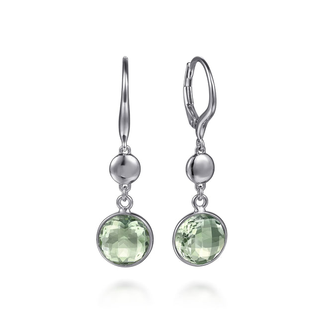 925 Sterling Silver Bujukan and Bezel Green Amethyst Drop Earrings
