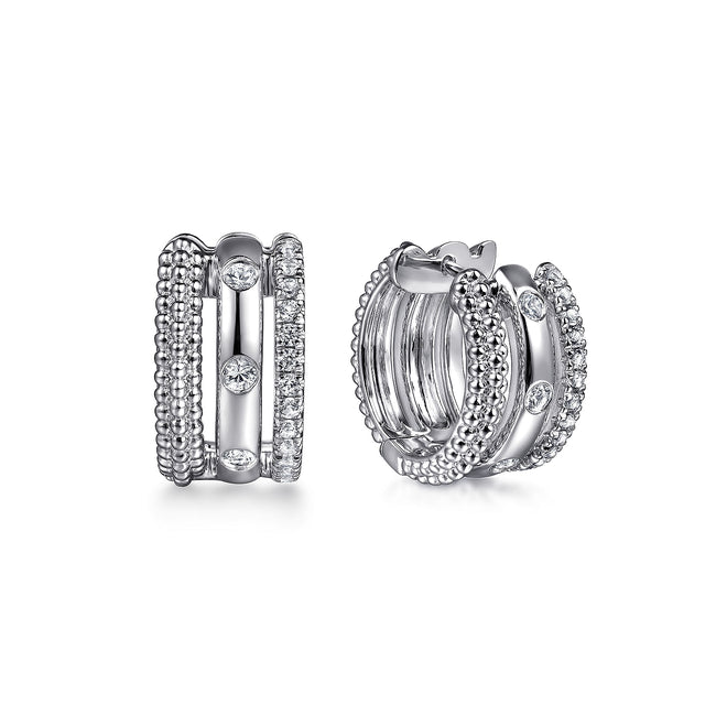 925 Sterling Silver Bujukan and White Sapphire Huggie Earrings