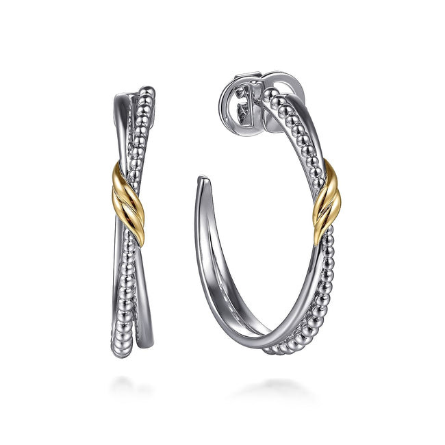 925 Sterling Silver and 14K Yellow Gold Bujukan Criss Cross J Hoop Earrings