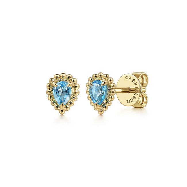 14K Yellow Gold London Blue Topaz Bujukan Pear Shape Stud Earrings