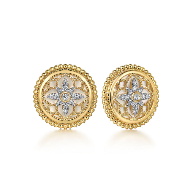 14K White & Yellow Gold Bujukan Diamond Stud Earrings