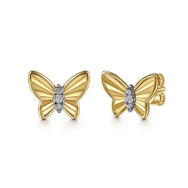 14K Yellow Gold Diamond Butterfly Stud Earrings