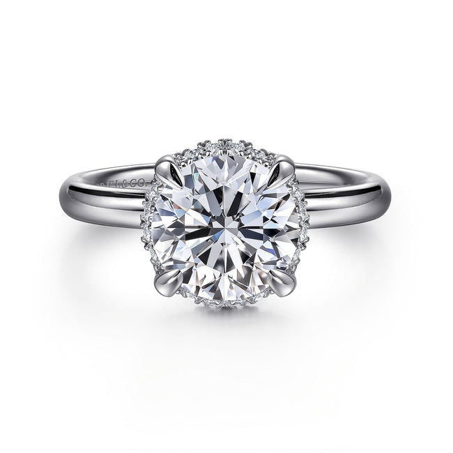 14K White Gold Round Hidden Halo Diamond Engagement Ring