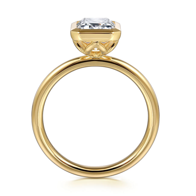 14K Yellow Gold Emerald Cut Bezel Set Diamond Engagement Ring