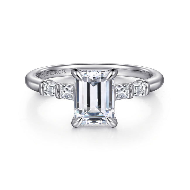 14K White Gold Emerald Cut Diamond Engagement Ring