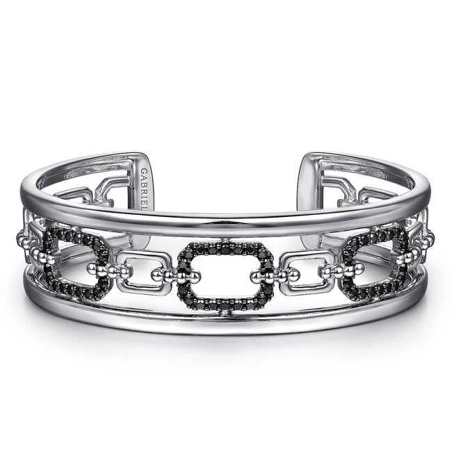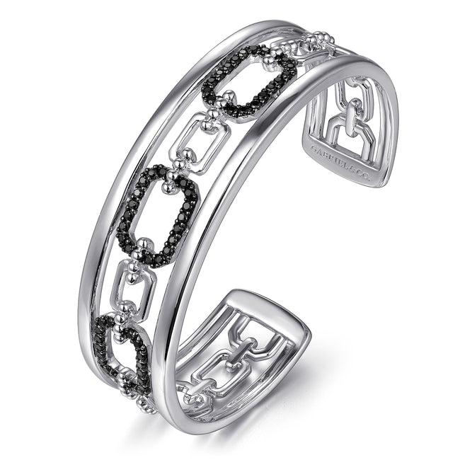 925 Sterling Silver Black Spinel Bujukan Link Chain Cuff Bracelet