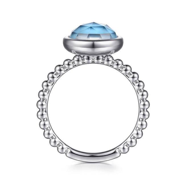 925 Sterling Silver Rock Crystal and Turquoise Bezel Ring