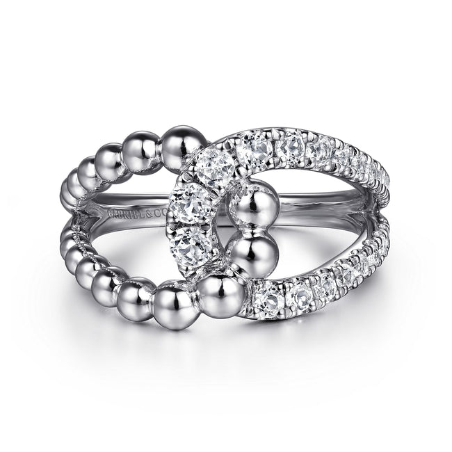 925 Sterling Silver Bujukan and White Sapphire Interlocking Ladies Ring