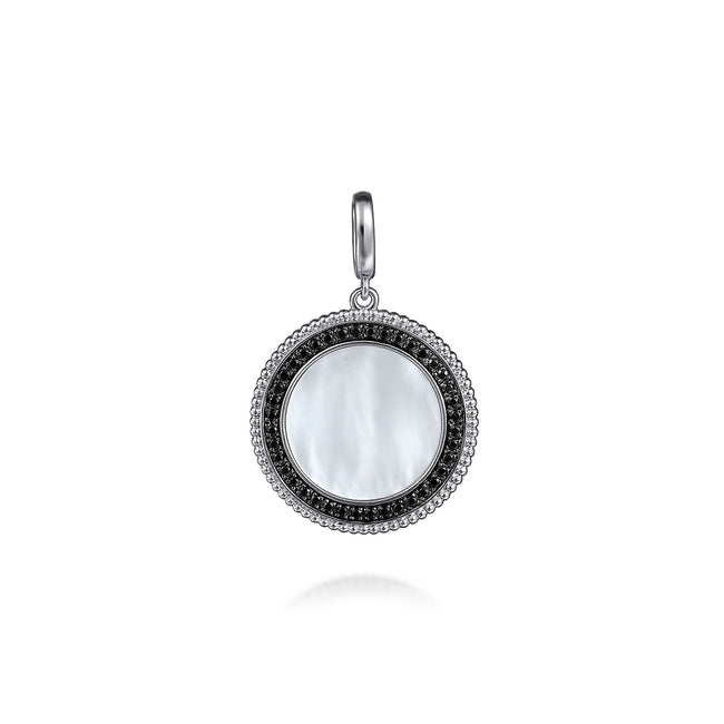 925 Sterling Silver White Mother Pearl and Black SpinelBujukan Medallion Pendant in size 24mm