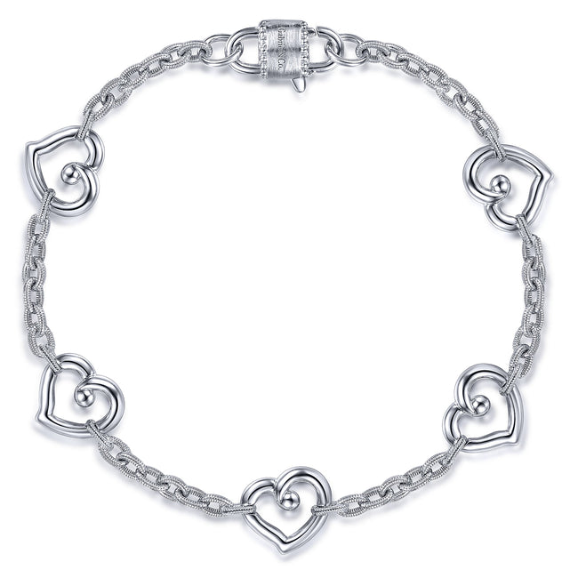 14K Yellow Gold Bujukan and White Sapphire Heart Charm Bracelet