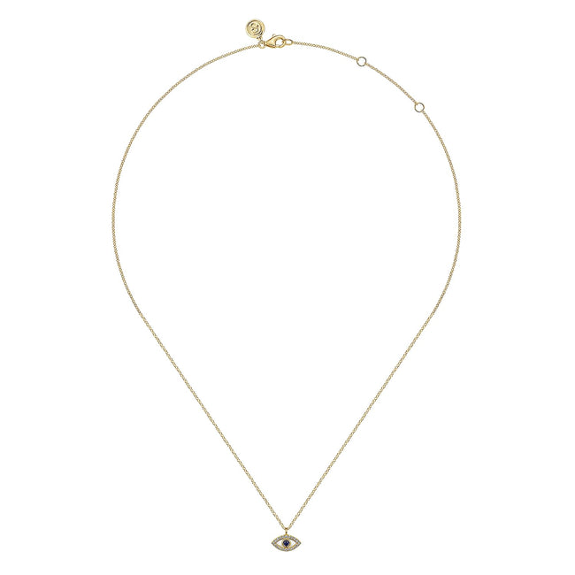 14K Yellow Gold Diamond and Sapphire Evil-Eye Pendant Necklace with White Enamel