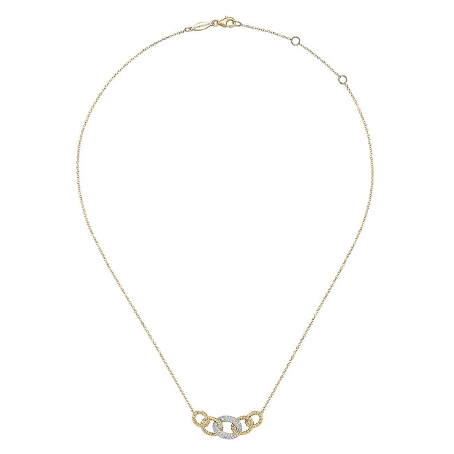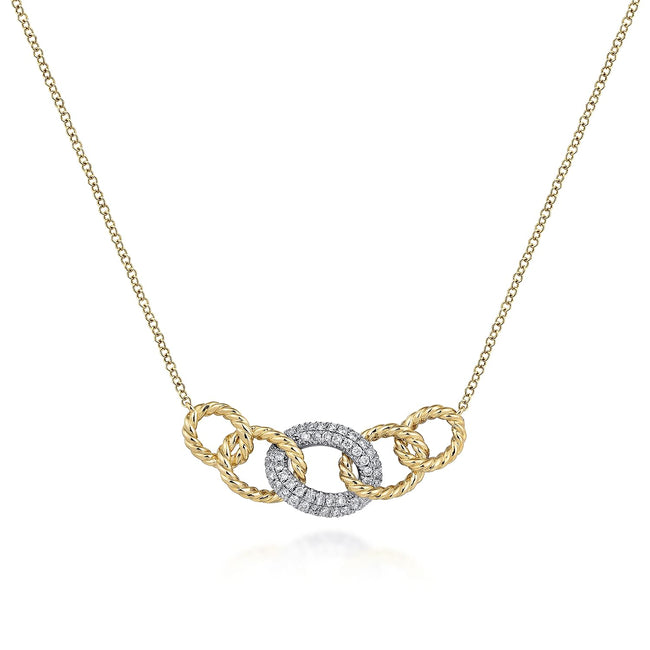 14K Yellow-White Gold Twisted Rope Link Necklace with Pavé Diamond Link Station