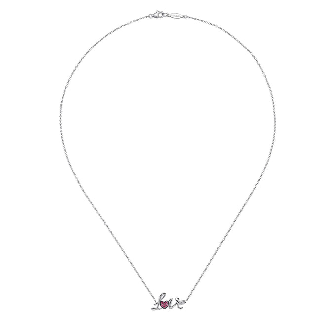 18 inch 925 Sterling Silver Ruby Pavé Love Necklace