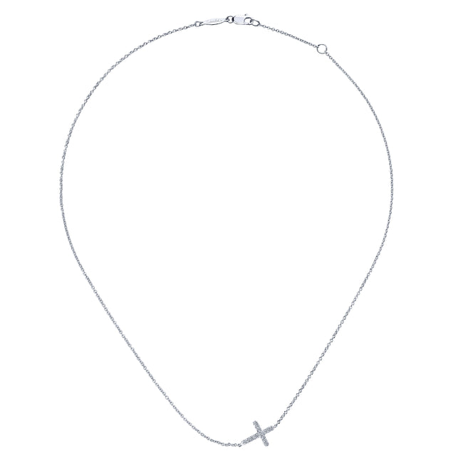 925 Sterling Silver Sideways White Sapphire Cross Necklace